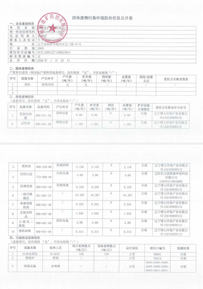 固體廢物污染環境防治信息公開表